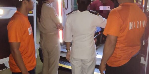 Personal naval realiza evacuación médica a un tripulante de una embarcación menor, en inmediaciones Isla Pérez, Yucatán.