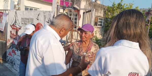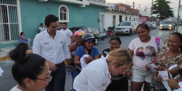 Caminata de Erick Rihani y Claudete Gamboa candidatos a alcalde y diputada local del PAN respectivamente en la parte poniente de Progreso.