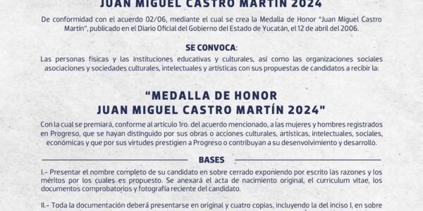 Progreso, Yucatán a 10 de junio 2024. El día lunes 17 de junio se cerráran las convocatorias para buscar al Ciudadano Distinguido 2024, máximo reconocimiento que se hace a destacados progreseños, y a la señorita Embajadora del 153 Aniversario de…