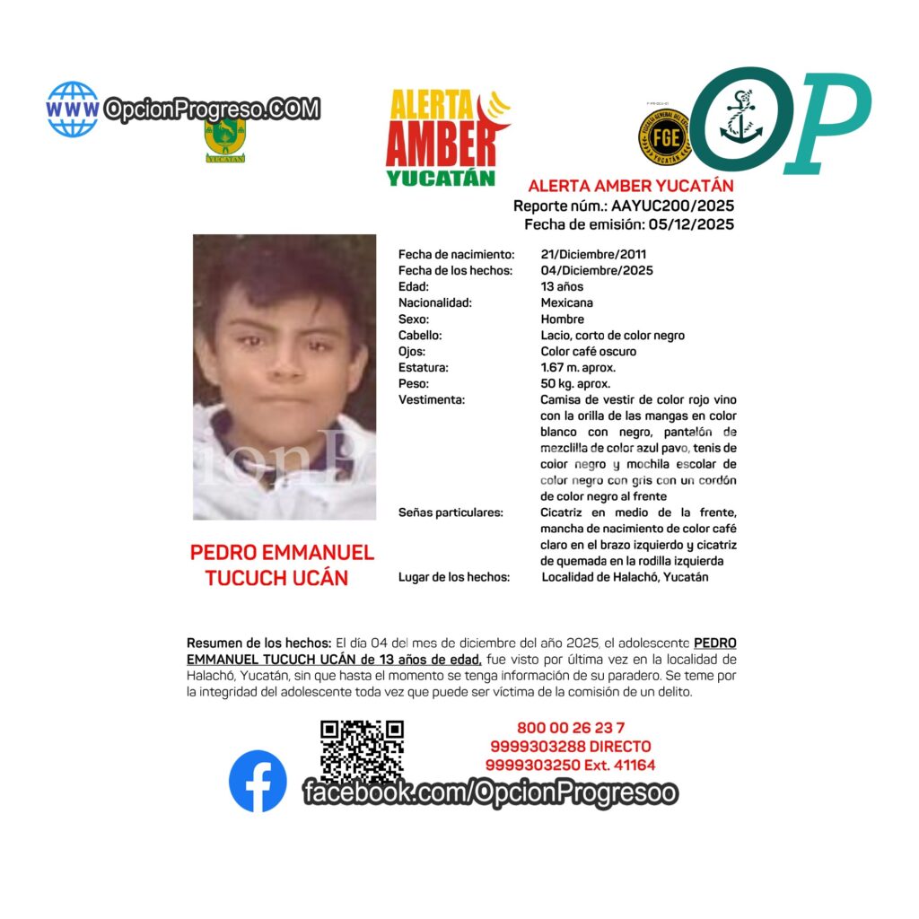 Página de inicioProgresoAlerta Amber Progreso Alerta Amber Roberto Nah Publicado en 7 diciembre, 2025 DEJAR UNA RESPUESTA Cancelar respuestaTu dirección de correo electrónico no será publicada. Los campos obligatorios están marcados con *Comentario * Nombre * Correo electrónico * Web Guardar mi nombre, correo electrónico y sitio web en este navegador para la próxima vez que haga un comentario. Roberto Nah Ver todas las entradas Navegación de entradas Entrada anteriorPasará mas de 5 años preso por robo. Entrada siguienteDETENIDO PROBABLE INVOLUCRADO EN FEMINICIDIO EN TELCHAC PUERTO. También te Podría Gustar Progreso EL AYUNTAMIENTO DE PROGRESO CONMEMORA EL DÍA INTERNACIONAL DE LA MUJER CON FERIA INTERACTIVA. Roberto Nah 9 marzo, 2024 Política. ERIK RIHANI LA MEJOR OPCIÓN PARA GOBERNAR AFIRMAN PROGRESEÑOS. Roberto Nah 29 abril, 2024 Progreso REFUERZAN LABORES DE BACHEO Y ASEO URBANO EN LA COMISARÍA DE SAN IGNACIO. Roberto Nah 29 noviembre, 2023 Progreso Comuna porteña promueve expresión artística juvenil. Roberto Nah 16 mayo, 2025