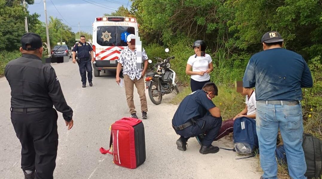 Hoy por la mañana a las 7:05 de la mañana, se suscitó un accidente en la calle 23 A por 46 y 48 de CXhicxulub cuando la motocicleta Vento línea 160 color blanco/rojo modelo 2022 con placas de circulación del estado de Yucatán, era conducida por Angel C.J. de 35 años de edad, quien llevaba un acompañante y cuando circulaba sobre la calle 23 A, al llegar a la altura de la calle 46 y 48 se le atraviesa un can y por no atropellarlo maniobró, razón por la cual perdió el control de su vehículo terminando derrapado sobre el pavimento.