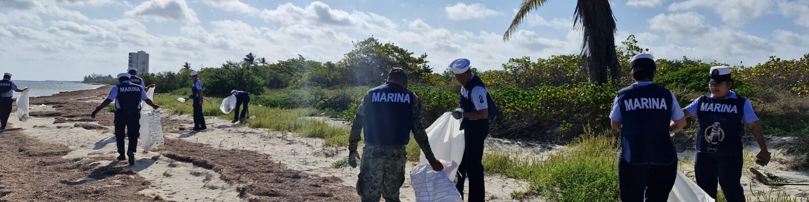 Marina participa en el Programa de Saneamiento Limpieza de Playas en la localidad de Santa Clara municipio Dzidzantún, Yucatán.